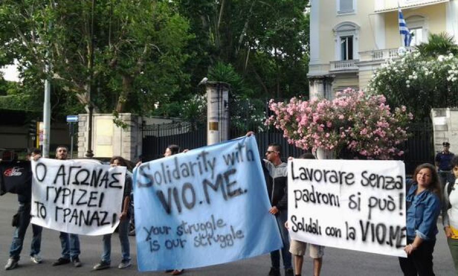 We are blue-collar workers, students, precarious and autonomous workers. We address you with this letter to answer the call for international solidarity made for today, Wednesday 26 of June 2013, by our brothers and comrades of the Vio.Me. self-managed factory of Thessaloniki. In May we met and hosted the workers and the Open Initiative of Solidarity with Vio.Me. in Rome during their tour here in Italy. We met and compared our experiences of struggle and resistance.
