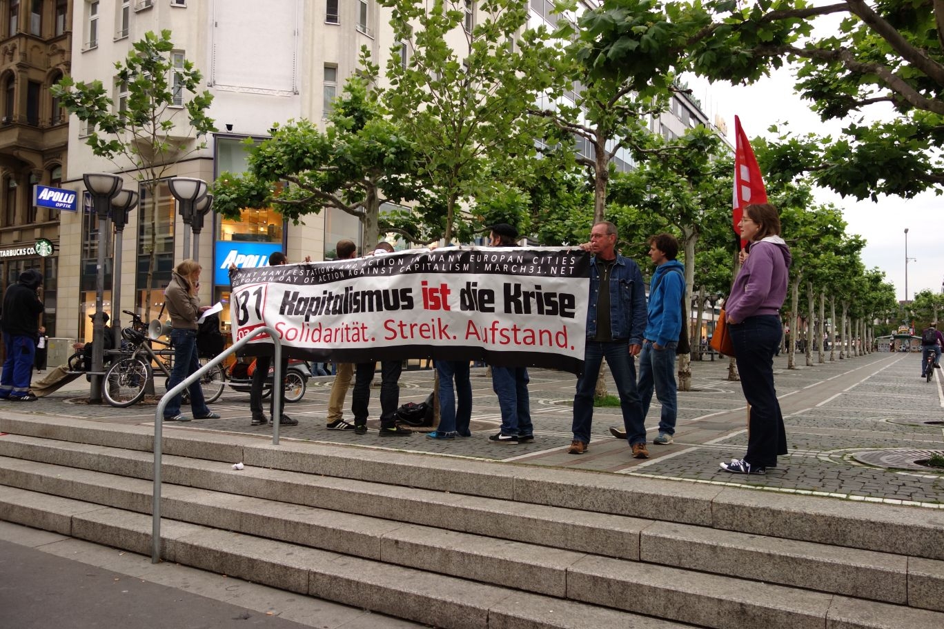 anticapitalistic groups, held an event at a central square in Frankfurt on