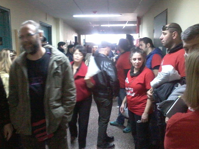12.00 It is the time of the formal start of the auction, and the hall of Thessalonikis bankruptcy courts is now blocked by protesters in solidarity with the struggle of the workers of VIOME for self management of the factory. A strong message to the authorities, judges, former owners and prospective buyers that in their efforts to liquidate the premises and to evict the workers cooperative from the factory they will be confronted by the whole of society.