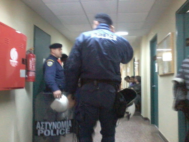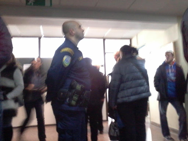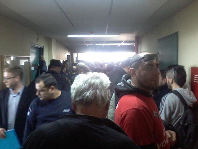 11.00 The hall of the bankruptcy court is chock full of police of all colours. Supporters of VIOME keep coming. Employees of public broadcaster ERT3, of Coka-Cola, school guards and many more are present today to show their support.