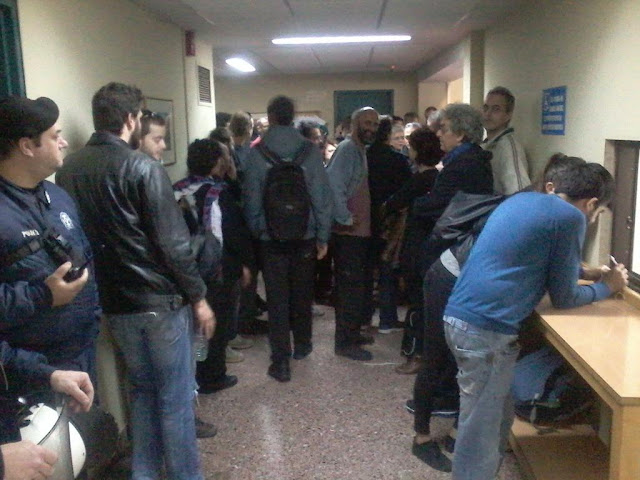 14.20 After the success of today’s mobilization, the protesters are leaving, while the workers thank all who with courage and responsibility gathered together to block the cogs of bureaucracy. A battle was won, but the struggle continues! The auction procedure continues next Thursday.
