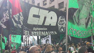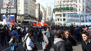 Με την ευκαιρία της συμμετοχής της ΒΙΟΜΕ στην έκτη παγκόσμια συνάντηση ανακτημένων επιχειρήσεων, σήμερα, πρώτη μέρα της αποστολής μας στην Αργεντινή, πήραμε μέρος στη μεγάλη αντικυβερνητική διαδήλωση που διοργάνωσαν τα συνδικάτα ενάντια στη φτώχεια και την καταστροφή που σπέρνει άλλη μια κυβέρνηση που υπηρετεί τα συμφέροντα της ολιγαρχίας.