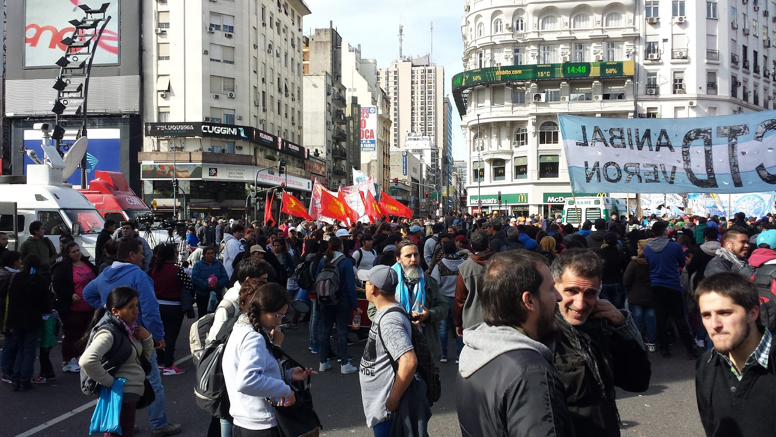 Με την ευκαιρία της συμμετοχής της ΒΙΟΜΕ στην έκτη παγκόσμια συνάντηση ανακτημένων επιχειρήσεων, σήμερα, πρώτη μέρα της αποστολής μας στην Αργεντινή, πήραμε μέρος στη μεγάλη αντικυβερνητική διαδήλωση που διοργάνωσαν τα συνδικάτα ενάντια στη φτώχεια και την καταστροφή που σπέρνει άλλη μια κυβέρνηση που υπηρετεί τα συμφέροντα της ολιγαρχίας.